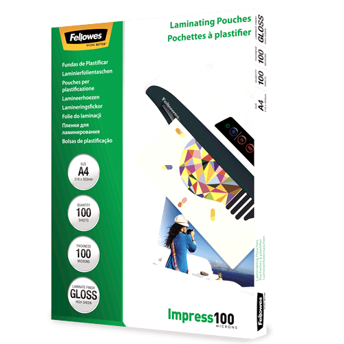 Glossy A4 100 micron laminating pouch, offers an everyday level of document protection.